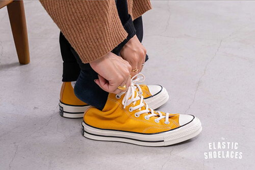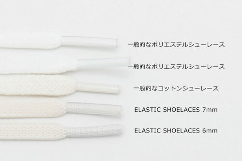 ●生成りのコットンシューレースの見た目で、 伸縮性に優れたゴム素材を使用した、 【ELASTIC SHOELACES-エラスティック シューレース-】 ●着脱時にストレスを感じるレースタイプのスニーカーを スリッポンの様に楽に履き脱ぎして頂けます。