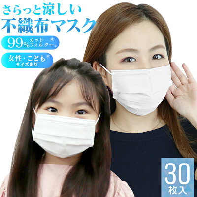 【70%OFFクーポン配布中】【送料無料】【99%カット】マスク 不織布 白 ホワイト 175mm 165mm 145mm 不織布マスク 子供 立体 使い捨てマスク 大人用 子供用 不織布マスク 小さめ 30枚 3層構造 高密度フィルター ウイルス 飛沫防止 冷感マスク 接触冷感 Q-Max0.356 送料無料