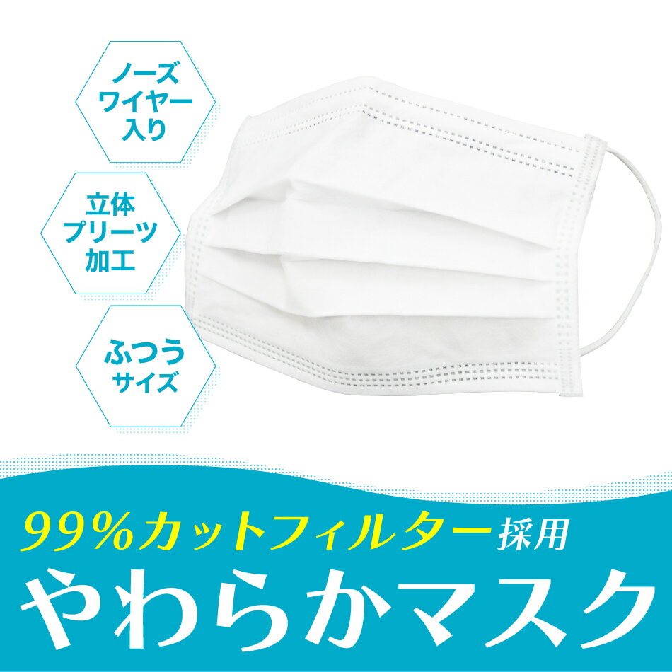 【期間限定価格】送料無料【99%カット】やわらかマスク マスク 50枚 6箱セット 300枚 在庫あり 平ゴム 耳が痛くならない 175mm 165mm 145mm 不織布マスク 大人用 使い捨てマスク 不織布 マスク 小さめ 3層構造 白 ホワイト 高密度フィルター ウイルス 飛沫防止 送料無料